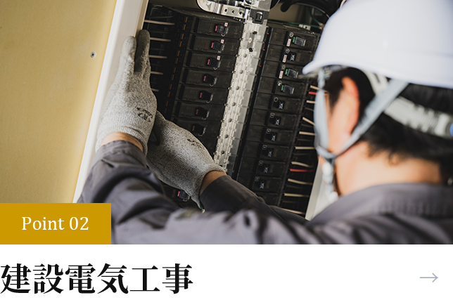教育施設や工場、病院や住宅などの建設物の屋内外電気設備の設計や施工を行っています。配線工事や大型機器の制御回路メンテナンス、コンセントや照明器具の取り付け・交換など、電気にまつわる多種多様な作業を行います。